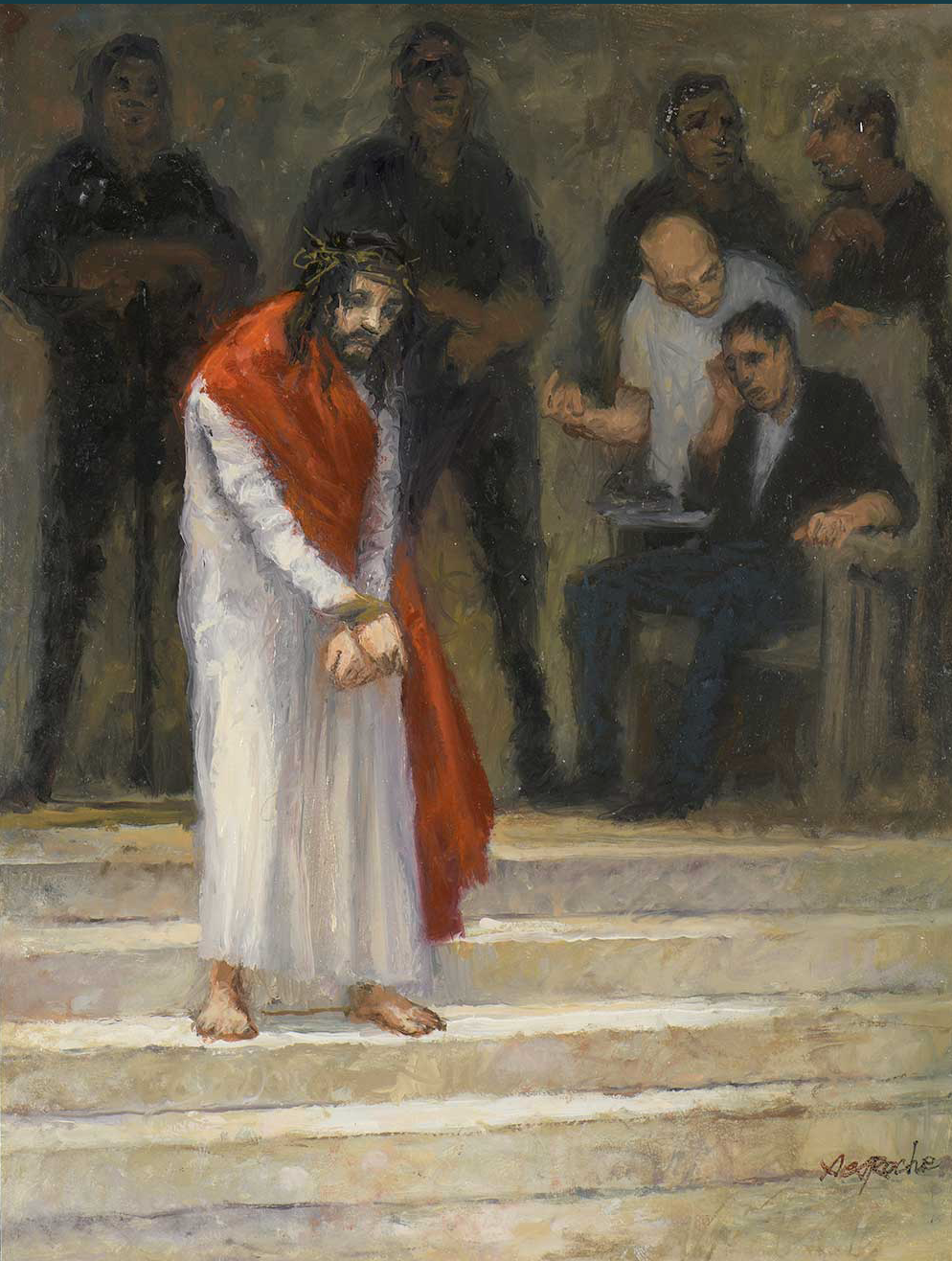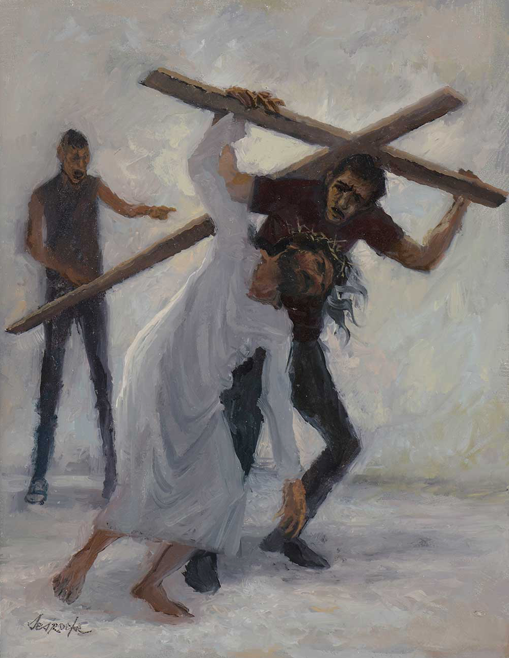 L’artiste met en scène des figures de notre époque, rendant la Passion du Christ actuelle et vivante.