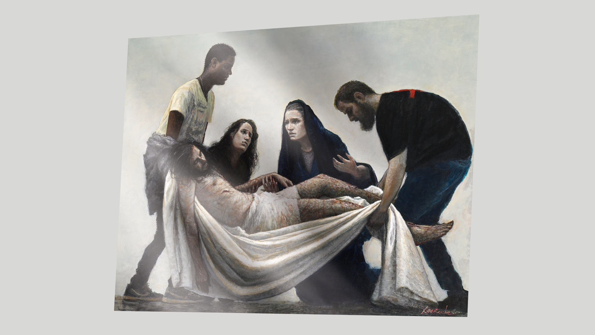 Une image de Marie et Jésus après la crucifixion, reproduite en bâche PVC 500g pour un impact visuel fort. Idéale pour les églises, les chapelles ou les espaces de prière, cette œuvre accompagne les moments de recueillement et de foi.